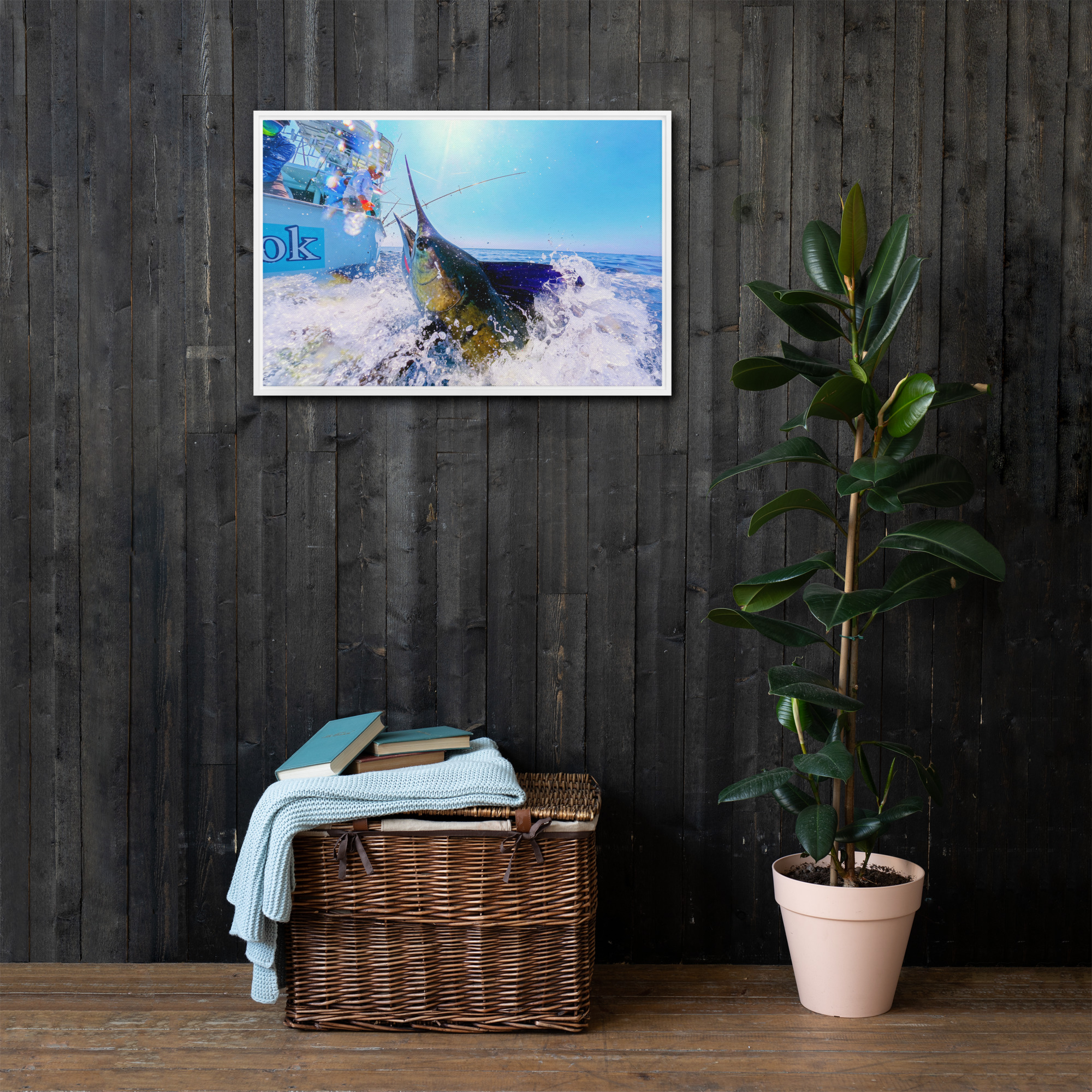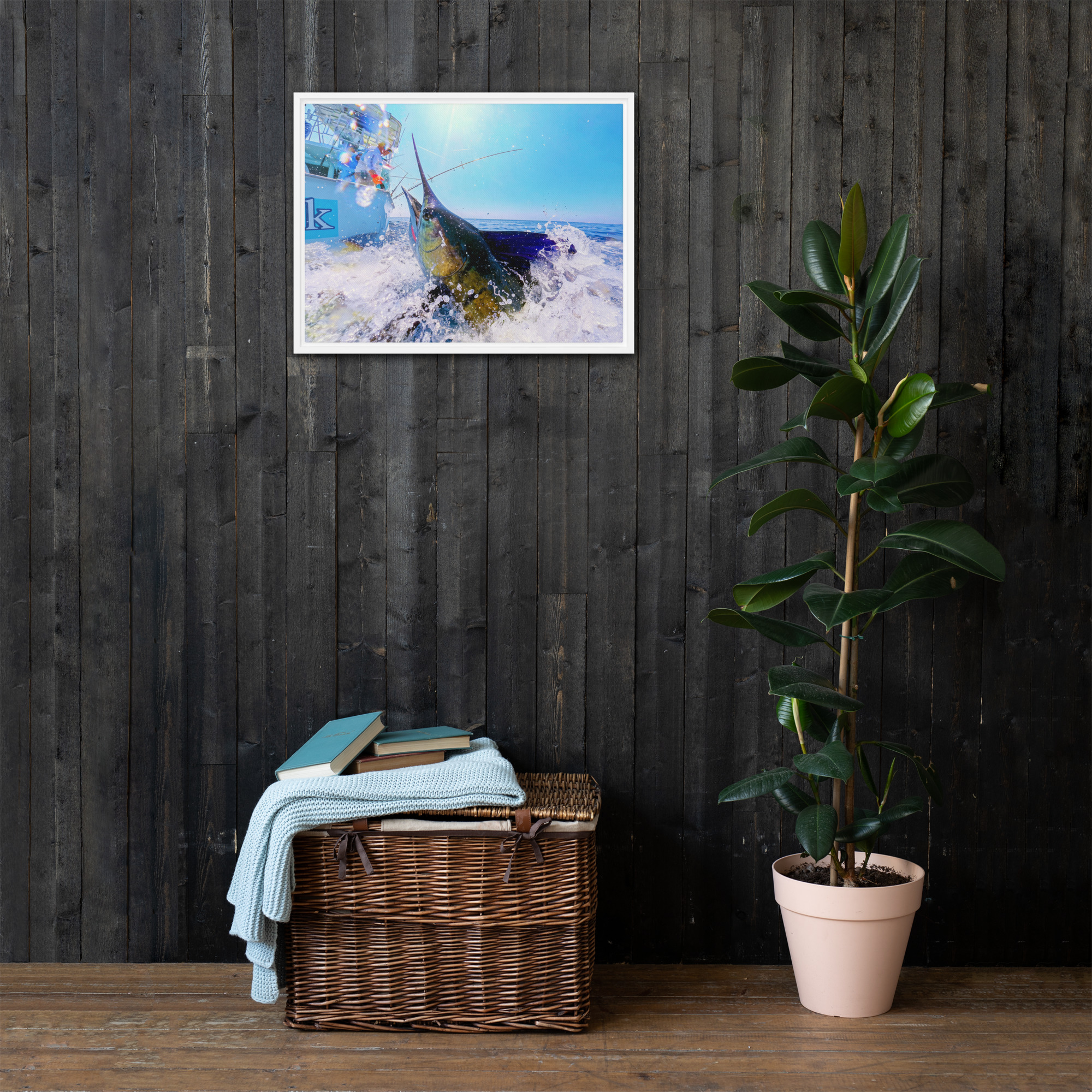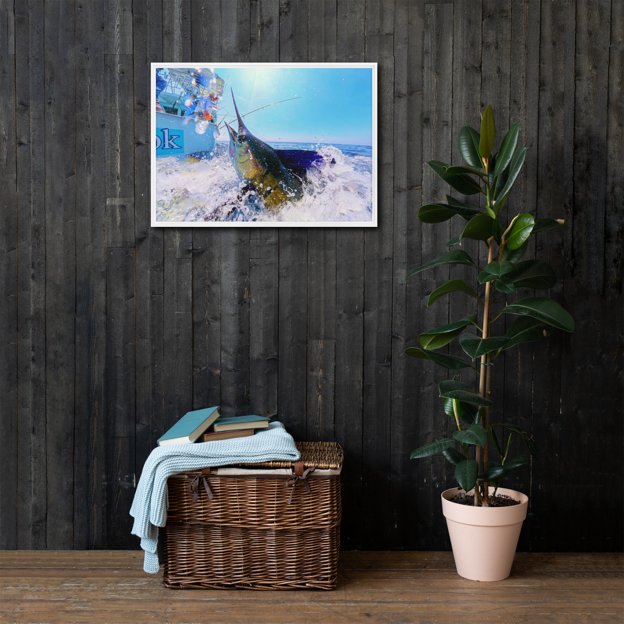 “The Strike” Framed Sailfish Canvas – Captain Hook Action Series